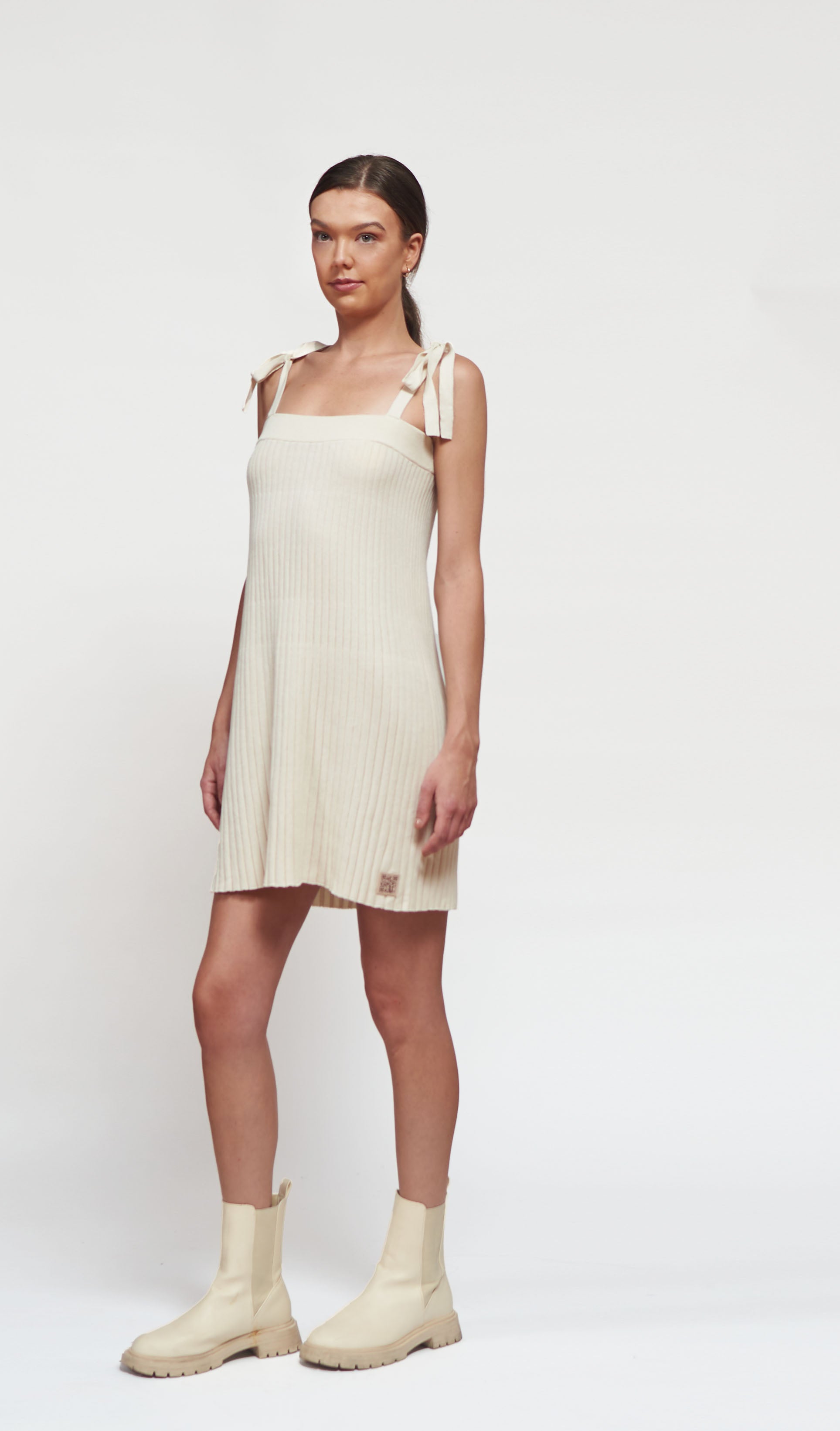 – Spaghetti strap dress with flexible length styling
